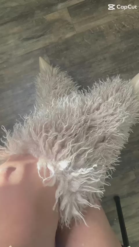 The Demure Diamante Boot features a 4-inch high heel and a pointed toe design, as well as faux shag fur and an inside zipper for easy closure.